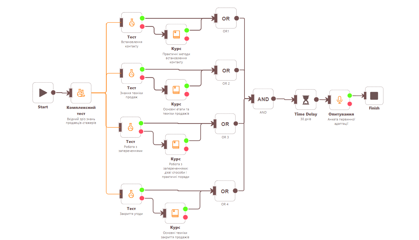 Завдяки функціоналу LMS Collaborator нам вдалося створити навчальні програми та об’єднати їх між собою в річну траєкторію навчання для кожної категорії працівників. Це дозволяє нам відслідкувати статистику і прогрес проходження навчання кожного співробітника.